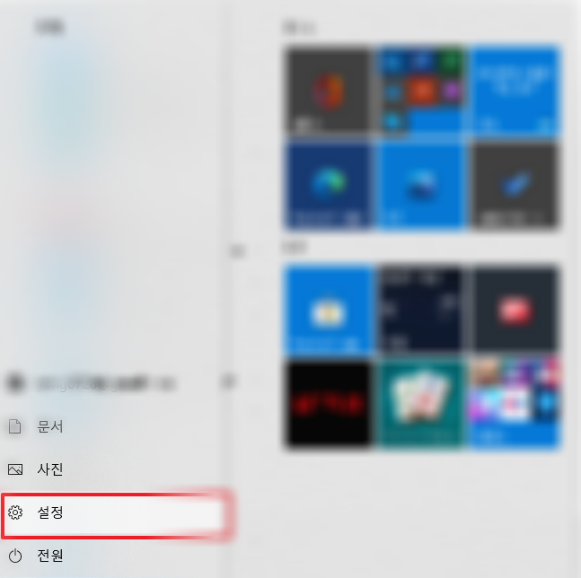 키보드의 윈도우키나 작업표시줄 맨 좌측의 윈도우 아이콘을 누르면 여러 메뉴들이 뜨는데, 컴퓨터 끌때 쓰는 전원버튼 바로위에 톱니바퀴 모양의 설정 버튼을 누른다.